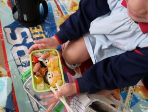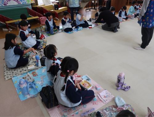 最後は幼稚園組さんみんなで一緒にお弁当を食べました🍱年長さんにとっては最後の遠足、園内ではありましたが素敵な思い出の一つになりました✨