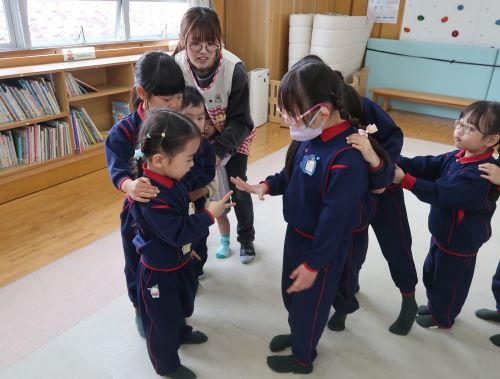 今日は楽しみにしていたお別れ遠足の日でした。本来は公園に出かける予定でしたが、天候の関係で園内での実施となりました。