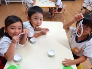 みんなあっという間に完成✨口をとがらせ、眉間にシワを寄せながら集中モード。