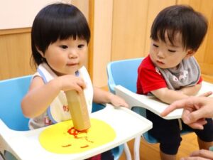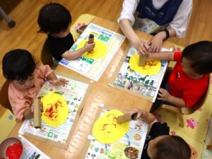 今日は絵の具を使ってスタンプ製作をしました作り方の説明を聞くと、上手にペタペタできていました🤗