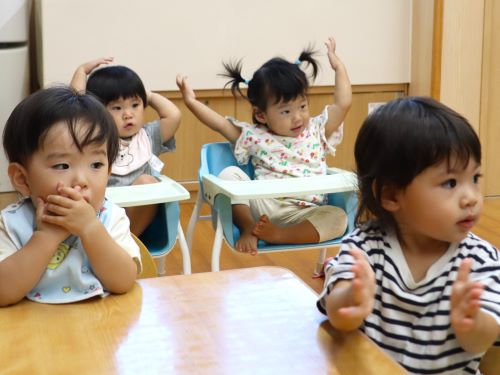 お名前呼びをすると、上手に「ハイ✋」と言えるようになりました🤗時々おともだちのところもお返事することも…😂