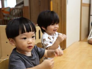 朝の会もきちんと座って参加できていて、今月のうたでは「やきいもグーチーパー✊✌✋」「バスごっこ」が大好きです🤭