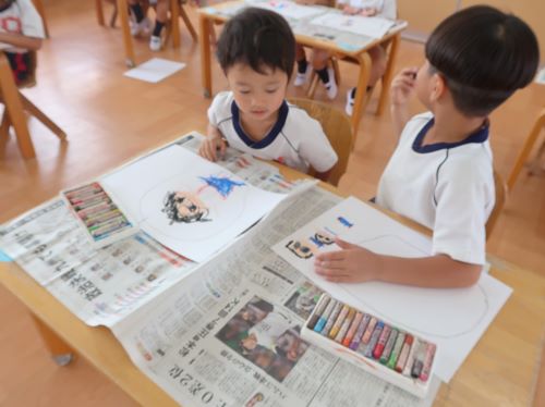 かけっこやリレーでは「○○くんとか、○○ちゃんと走ったけん‼」など、その時の様子を思い出しながら描いていましたよ🤗