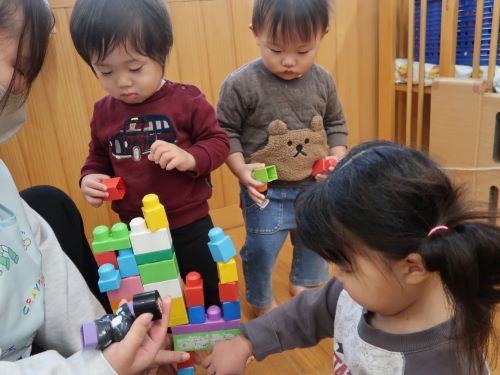 ブロックを重ねるのが上手になったうさぎ組さんたちです😄