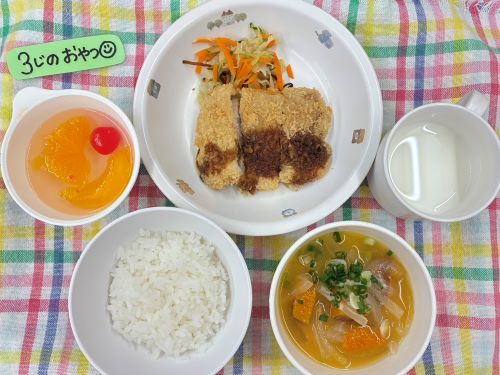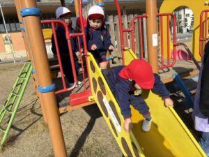 12月2日 園の様子未分類 12月2日、きりん組さんの様子です。 今日はパトリアの公園までお散歩に行きました☀公園の遊具で、思い切り遊ぶきりん組さんです🎶 遊具で遊ぶときは「じゅんばん!じゅんばん!」と、順番で使うことを自分たちで意識できています👏 歩いたり、走ったり、遊具で遊んだり、たくさん体を動かすことができました👍また、お散歩に行こうね♪ 今日のメニューは、ごはん、みそ汁、とんかつ、昆布和え、牛乳です。手作りとんかつが人気で、おかわりもたくさん食べました😋3時のおやつは、フルーツゼリーです。