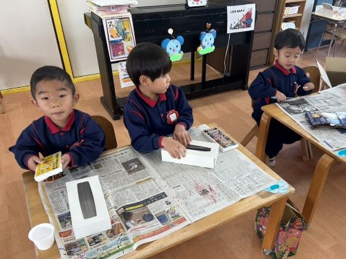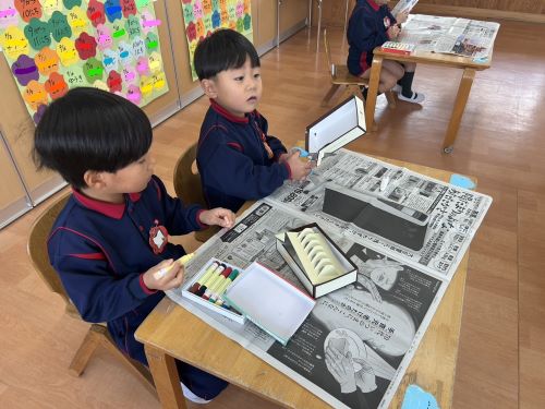 はじめは「難しいな~」と悩んでいた子も、おともだちのを参考にしながら「こうしたらいいかも!」と、工夫をする姿が見られました✨また続きを行たいと思います😄
