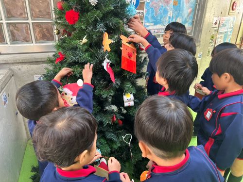 梅組さんは、先週作ったクリスマスのオーナメントを飾りました🎄「メリークリスマス!」「サンタさん来てね~♪」と、ワクワクで飾りました😆