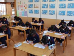 若菜会では、黙々と集中して取り組む姿が立派でした✨制限時間の180秒間で全て終わらなかったおともだちもいましたが、時間いっぱい最後まで頑張りました👍