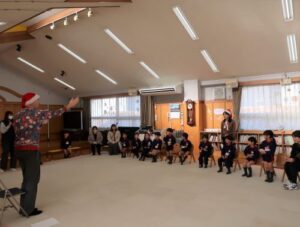 梅組さんは、初めてALTの先生とのECC活動でした。おうちの方がいて、少し緊張気味でしたが「サンタクロース🎅」「スノーマン⛄」と、体を動かしながらゲームをする中で、緊張もほぐれて笑顔と元気が見られました✨活動後も「楽しかったね♪」「面白かったね😆」と、お話していました。