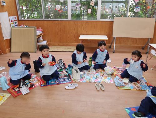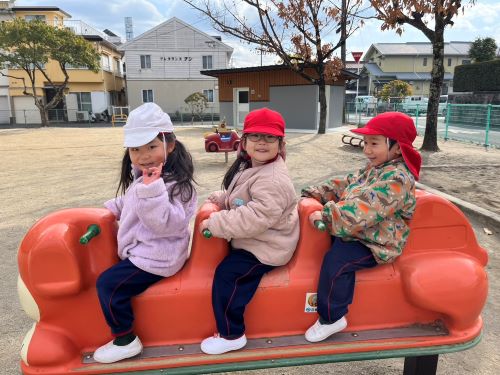 1月15日 園の様子未分類 1月15日、楓組さんの様子です。 今日は、お昼に天気が良く暖かかったので、お散歩に行きました🎵 ドングリ公園に行きたい!という子どもたちの声を聞き、ドングリ公園に行くことにしました😆遊具で遊んだり、鬼ごっこをしたりして楽しみました♪ たくさん体を動かした後は、お腹ペコペコ!お弁当もパクパクすすみ、「おいしい~😊」と、ニコニコです💕