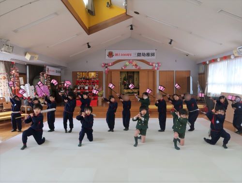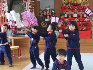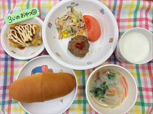 2月10日 園の様子未分類 2月10日、松組さんの様子です。 今日は、青い目の人形パレードの練習をしました🎎本番まで練習できるのも残り3日となり、集中して取り組みました。 ぼんぼりを持つ腕の高さや、ほうきを動かす方向など、細かいところまで意識しながら一生懸命取り組んでいます✨ 一つひとつの動きがそろってきて、こどもたちも気合十分です👍 今日のメニューは、パン、豆乳スープ、ハンバーグ、春雨サラダとトマト、牛乳です。松組さんのリクエスト、ハンバーグが登場😋3時のおやつは、お好み焼きです。