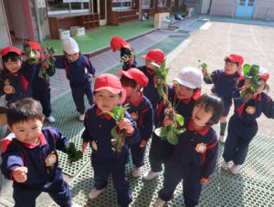 楓組さんは久しぶりの野菜収穫🥬「大きくなっちょる!」と日田弁で大喜び😁
