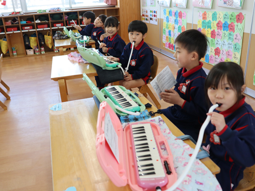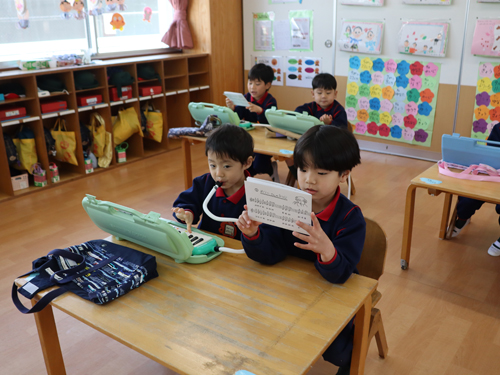 梅組さんは鍵盤ハーモニカ🎹を自分のペースで頑張っています。