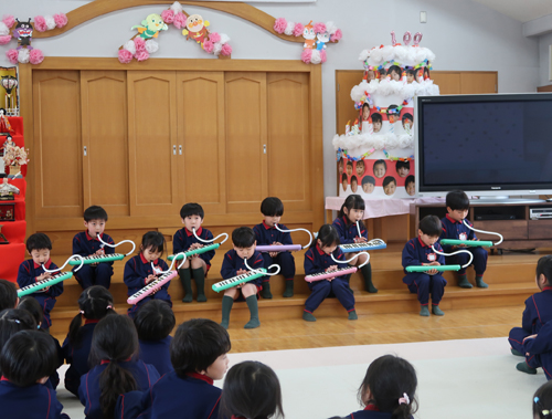 梅組さんは鍵盤ハーモニカで「かえるのうた」「メリーさんのヒツジ」を発表してくれました🎹
