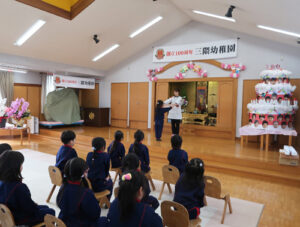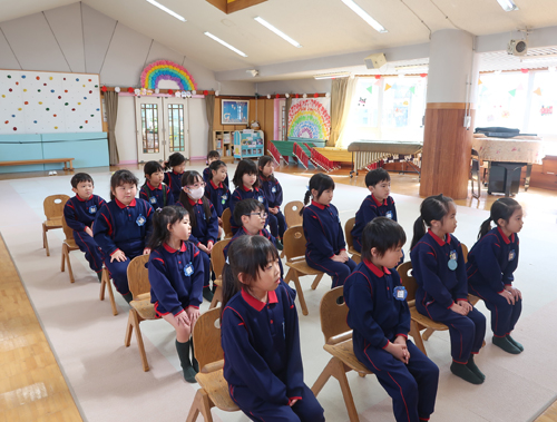 松組さんは卒園式に向けての練習をしています。今日は証書の受け取り方です。