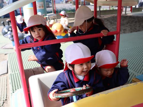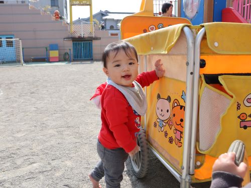 うさぎ組さんは、お外で元気いっぱい遊びました🎶お話も上手になってきた1歳児さんは、車に乗るとおともだちと一緒に「からあげ屋さんと、お店屋さんに行こう~😁」と、みんな楽しそうにお出かけしていました。