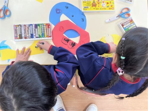 今日は角箱を作りました!鬼の顔は、お手本を見ながら目や鼻など色や形を考えて描くことができました👹